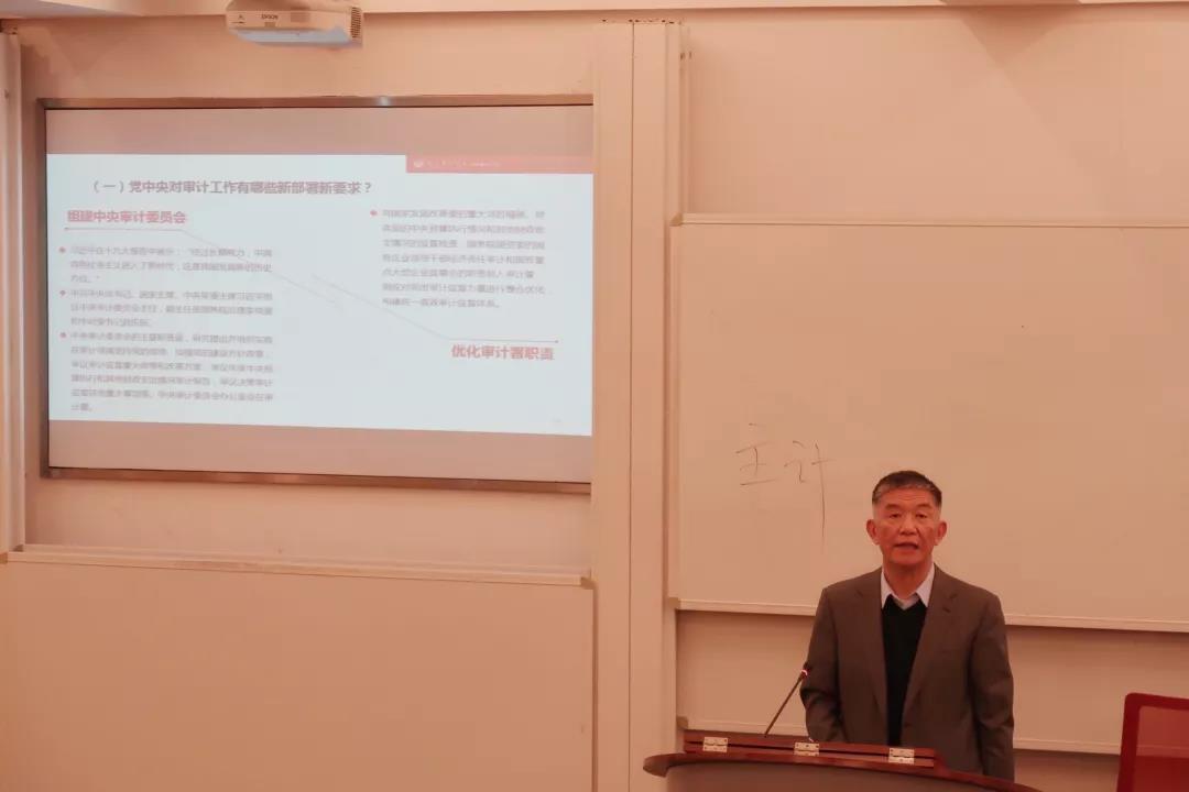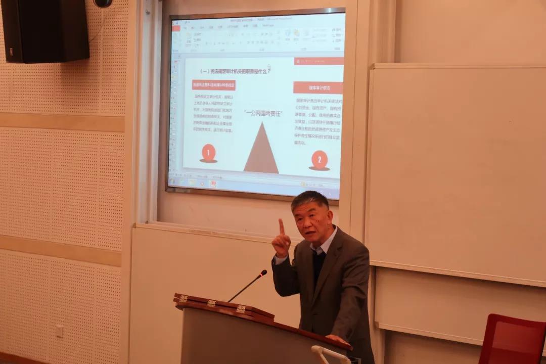 此次讲座围绕新时代国家审计的发展展开,分为四个板块,“国家审计的基本特征”、 “国家审计的工作形式”、“国家审计的历史传统”、“新时代国家审计的发展方向”。