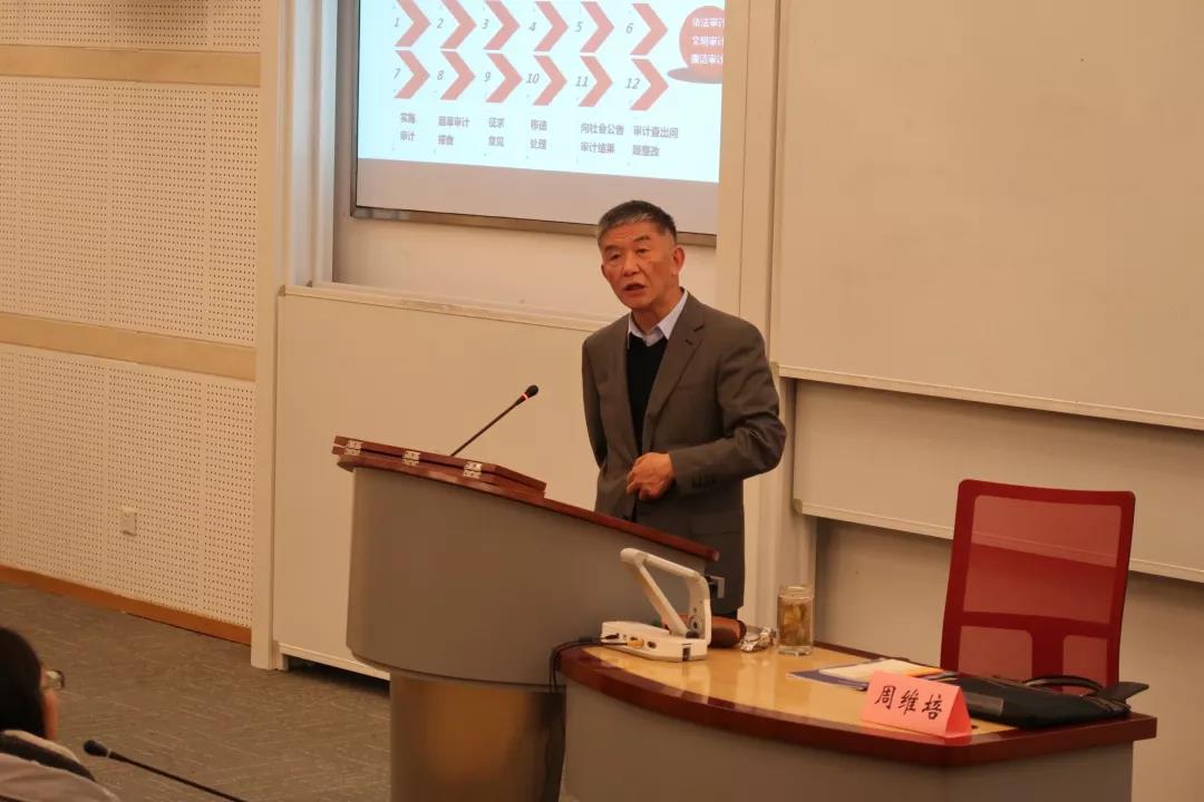 11月28日18:30,由澄园书院与政府审计学院专业协会联合举办的“审计大讲堂系列讲座”第一讲在敏知102举办,本次讲座特别邀请周维培院长担任主讲人,澄园书院王素梅院长主持,向我们介绍了新时代我国国家审计的发展。