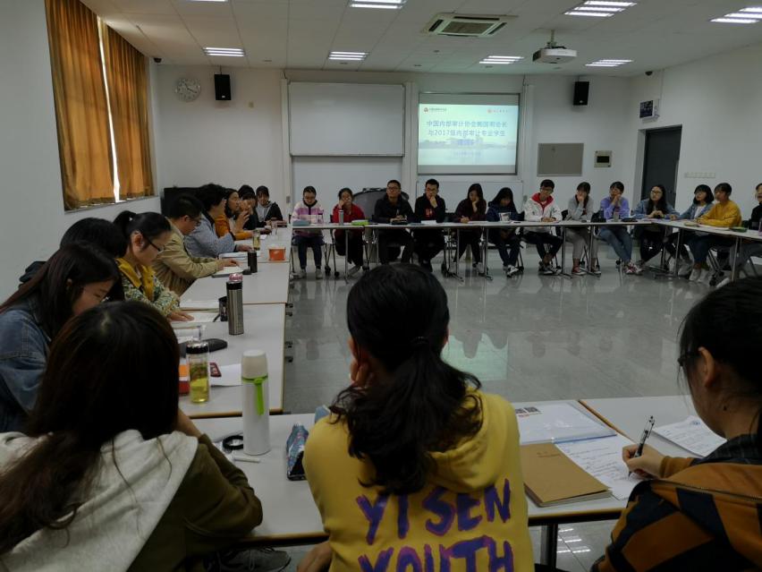 鲍国明会长结合自己多年的工作经验,借助丰富的示例深入浅出地解答了同学们提出的疑问,拓宽了同学们的视野,使同学们对内部审计有了更深入的认识,让同学们受益匪浅,坚定了同学们对未来的内部审计事业蓬勃发展的信心。