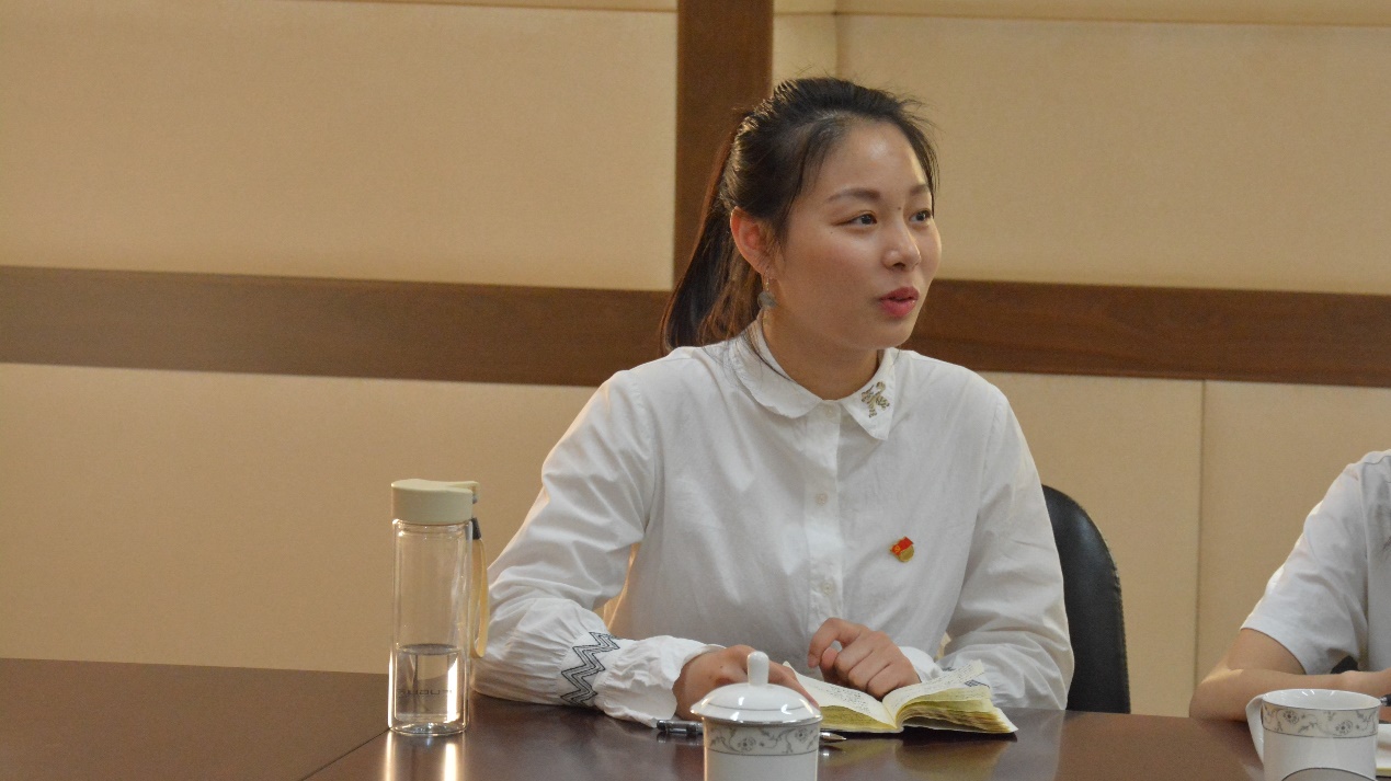 政府审计学院党总支优秀党员代表和秀星教授分享了自己入党32年来不忘初心教书育人的先进事迹,和老师热爱学生、执着教育、为人师表,用真心真情关心培养学生,也得到了学生的感恩敬爱,在平凡的工作岗位书写有意义的人生。