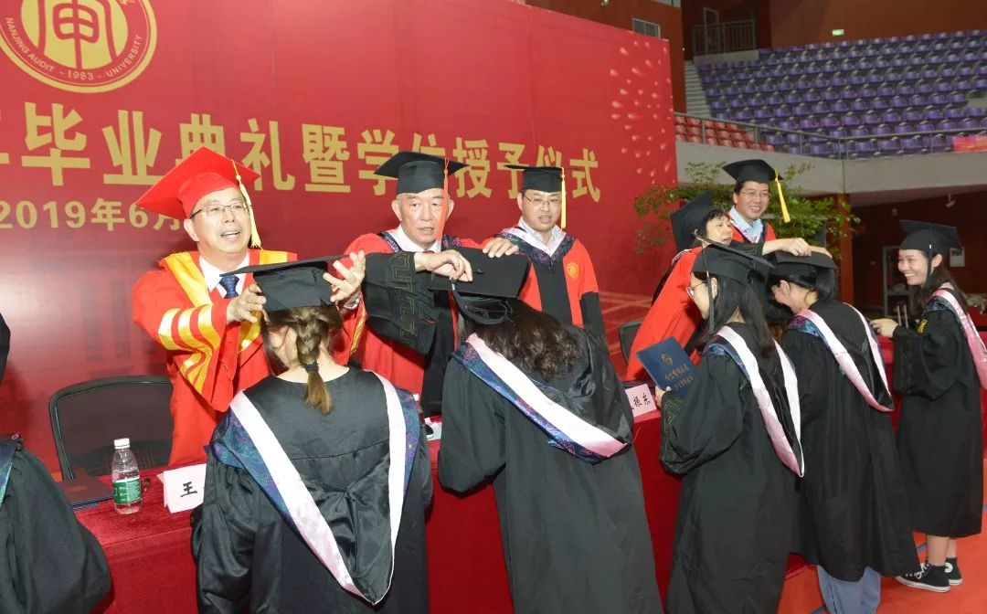 6月21日下午,在学校毕业典礼结束之后,政府审计学院在体育健身中心隆重举行2019届毕业生学位授予仪式。校党委副书记、副校长王会金教授出席,政府审计学院院长周维培教授、党总支书记陈祖华、副院长戚振东、副院长王士红,教授代表陈丹萍、和秀星,系主任代表陈艳娇、张竹林,以及2019届毕业研究生、本科生和家长代表共四百余人参加。