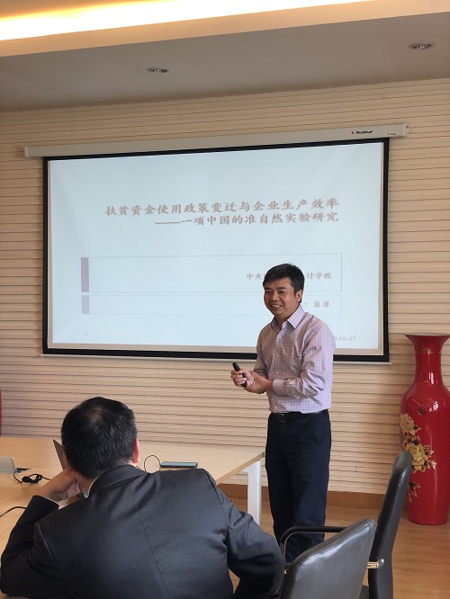 10月27日下午,中央财经大学期刊社社长袁淳教授为政府审计学院、会计学院师生做了一场讲座,就他的论文《扶贫资金使用政策变迁与企业生产效率 —— 一项中国的准自然实验研究》与我校师生进行了交流。本次讲座吸引了多位师生前来学习交流,讲座由会计学院院长殷俊明教授主持。