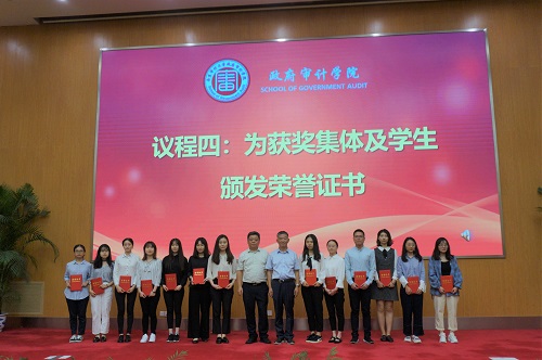 政府审计学院副院长王士红宣读了《政府审计学院关于表彰2019年度研究生“优秀实践集体”及“优秀实践个人”的决定》。审计署驻广州特派办副特派员张冬霁、政府审计学院院长周维培为13位获得“优秀实践个人”称号的同学颁发荣誉证书,研究生院院长姜德波为两个获得“优秀实践集体”称号的集体颁发荣誉证书。
