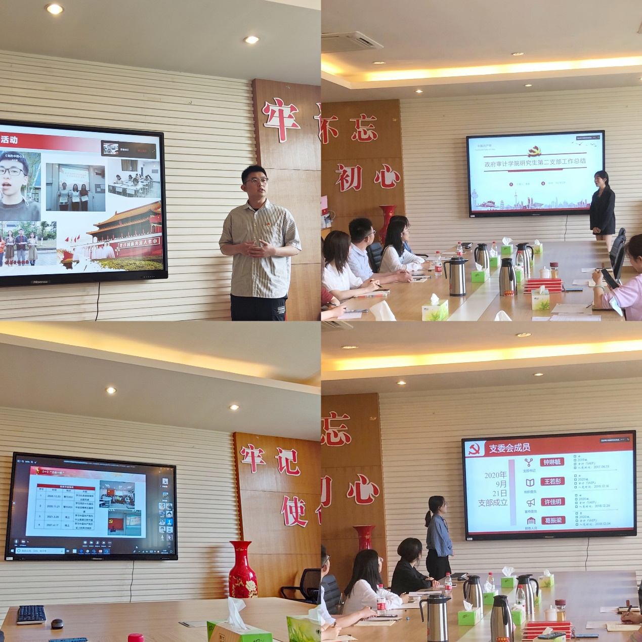 政府审计学院四个研究生党支部支部书记从组织设置、党员管理教育、组织生活、工作总结及整改等方面对党支部工作进行了汇报。通过对党支部工作开展情况、取得成效及改进之处的总结,各支部明确了支部工作未来开展方向,并强调要进一步强化党支部战斗堡垒作用。