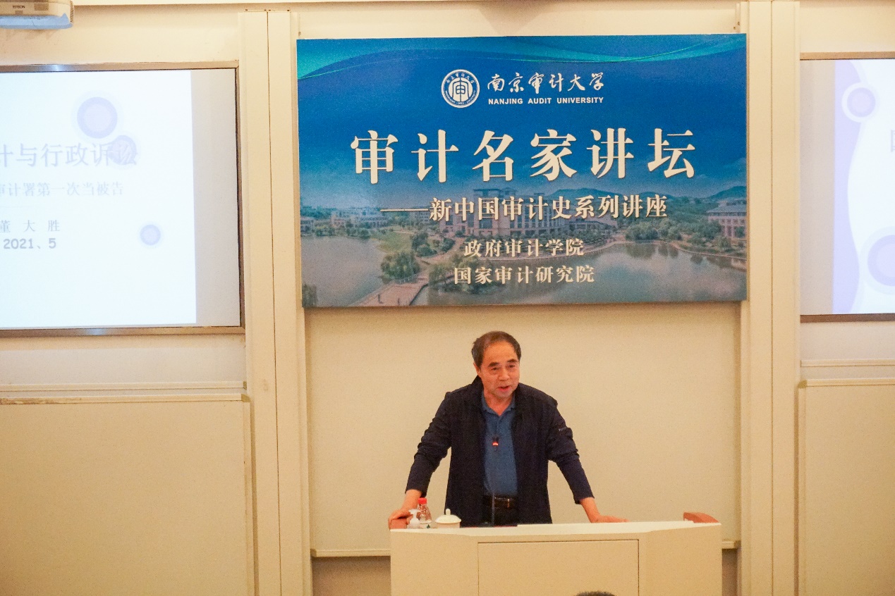 5月26日,由WilliamHill威廉希尔政府审计学院、国家审计研究院联合举办的“审计名家讲坛”——新中国审计史系列讲座第四讲在敏行楼102报告厅成功举行。本次讲座也是审计署原党组副书记、副审计长、中国审计学会原会长董大胜博士所做的第三次专题讲座。政府审计学院及其他院系近百名师生参加了此次讲座。