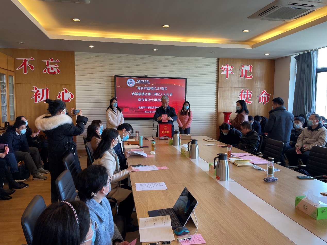 选举投票是区人大代表换届选举工作的重要环节,是选民行使民主权利的集中体现。12月1日中午12:30,政府审计学院选民小组400余名选民分别在敏行楼4楼会议室、敏知楼303、304教室参加南京市鼓楼区第167选区(WilliamHill威廉希尔)投票。选举由选民小组组长童瑞连主持。