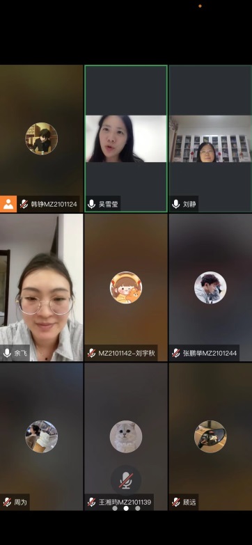 从2月25日至今,云南省审计厅实习小组8名同学在云南已度过近两个月的实习时光。为进一步了解实习情况、关心实习学生生活,政府审计学院副院长刘静、学科办公室主任吴雪莹和辅导员余飞与实习小组8位同学于2022年4月16日晚8:30在线召开师生座谈会。