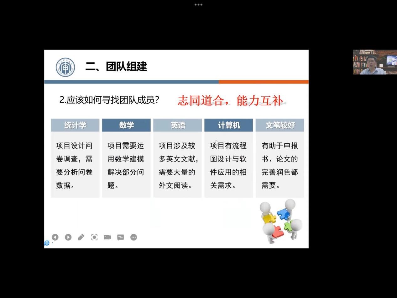 5月4日下午,政府审计学院通过线上会议形式开展“师友同行”系列讲座——如何做好大创申报。本次讲座的主讲人是澄园书院院长樊士德教授。樊院长是中国社会科学院经济学博士,南京大学商学院博士后,硕士生导师,学科带头人,美国Boston University访问学者,担任全国博弈论与实验经济学研究会常务理事,先后主持国家社科基金项目等国家级、省部级重大和重点各类项目40余项,在《中国工业经济》等报刊发表论文80余篇,获得省部级等各类奖项50余项。先后入选江苏高校“青蓝工程”优秀教学团队带头人、江苏高校“青蓝工程”中青年学术带头人、江苏省第四期和第五期“333工程高层次人才”中青年科学技术带头人、首批“江苏青年社科英才”等。