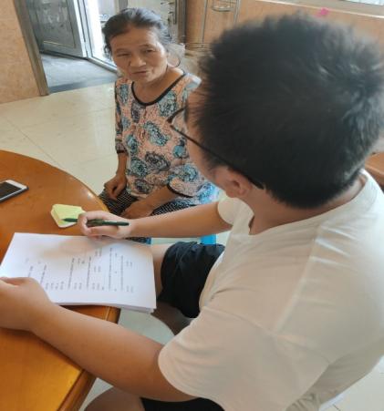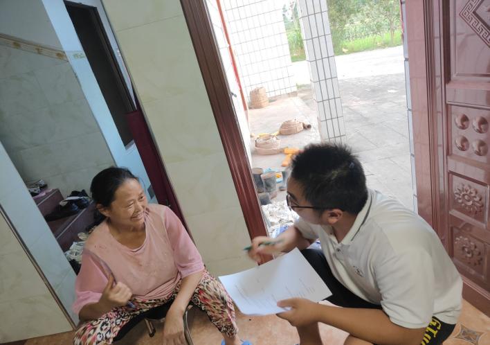 为进一步了解清楚家乡的真情与实况,调研过程中,“审入乡心”实践小分队在发放调查问卷后,走进村民家中,同他们亲切地展开交谈。