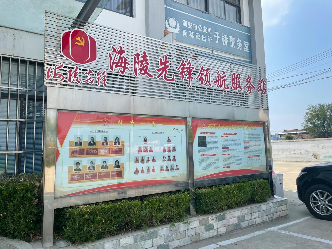 南通小分队首先前往南莫镇于桥村党群服务中心,党群服务中心周围花团锦簇,建筑美观大方。队员们对党群服务中心周围的公示栏、政策张贴等进行浏览、记录,对于桥村的发展现状以及近五年规划有了初步的认知。
