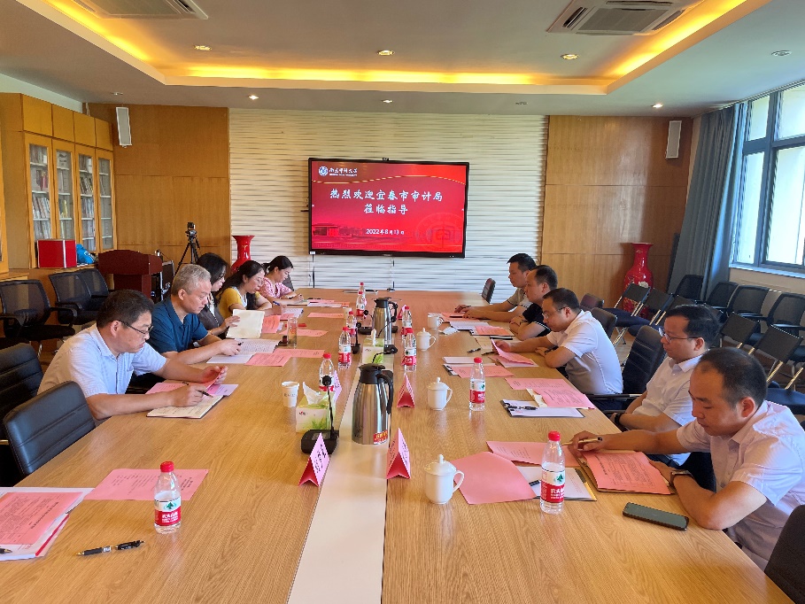 8月13日上午,江西省宜春市审计局与政府审计学院交流座谈会在敏行楼四楼会议室举行。宜春市审计局党组书记、局长周建鲜等领导一行5人与政府审计学院党委书记童瑞连、执行院长王士红、副院长戚振东等座谈交流。