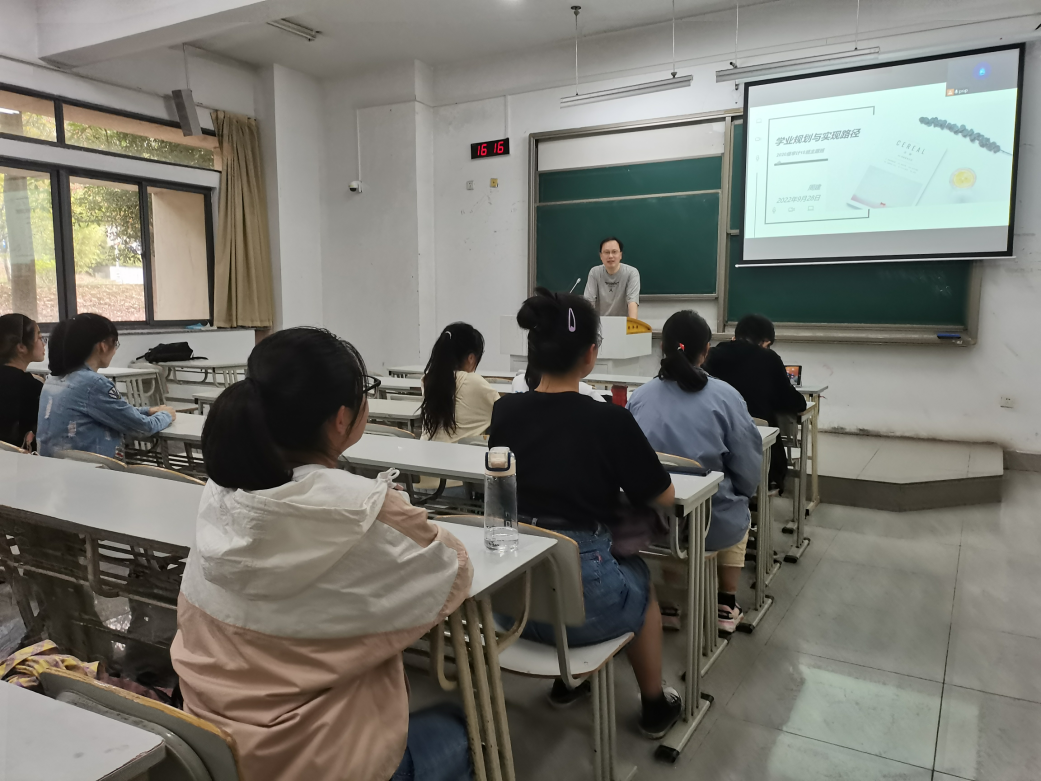接下来,周老师就班级建设提纲挈领,引出班会主题,即学业规划与实现路径。周老师认为,想要做好学业规划,需要有明确的学业目标;探寻实现路径,需要制定有效的实施方案。