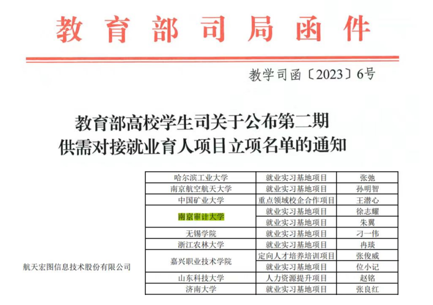 近日,教育部高校学生司发布《教育部高校学生司关于公布第二期供需对接就业育人项目立项名单的通知》(教学司函〔2023〕6号),政府审计学院资源环境审计系与南京航天宏图信息技术股份有限公司合作申报的“3S技术在资源环境审计中的应用”就业实习基地项目获准立项。作为政府审计学院大力打造的项目,其对促进审计学特别是资源环境审计方向的大学生提升就业竞争力、改善人才供需状况,以及推动高等教育创新等具有重要意义,是学院高质量推进就业育人工作的重要成果之一。