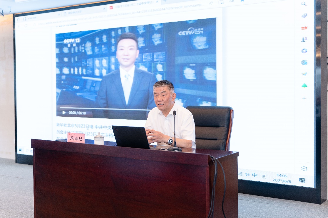 讲座伊始,周维培首先介绍了中央审计委员会组建的背景、意义及其职责。随后,他总结了中央审计委员会领导下审计工作的历史性成就,包括党中央对审计工作的集中统一领导不断细化、实化、制度化;对中国特色社会主义审计事业的规律性认识不断深化;服务党和国家工作大局彰显独特监督作用;审计整改总体格局初步成型,结果运用贯通协同等。周维培带领大家重温了中央审计委员会历次会议精神,并阐述了二十届中央审计委员会第一次会议精神。他指出,本次会议以新时代中国特色社会主义审计思想为指导,提出了审计是党和国家监督体系的重要组成部分,是推动国家治理体系和治理能力现代化的重要力量的新定位新使命,中央审计委员会推动审计体制实现系统性、整体性重构,走出了一条契合中国国情的审计新路子,审计工作取得历史性成就、发生历史性变革。会议展望未来,明确了新时代审计工作的总体要求、具体要求;立足当下,以“六聚焦”做好今年审计工作,体现了“稳字当头,稳中求进”的工作总基调。此外会议还总结了审计机关40年发展经验,并对推进新时代审计工作高质量发展进行具体部署。最后,周维培就会议中的几个新提法进行了具体阐述和详细解读。
