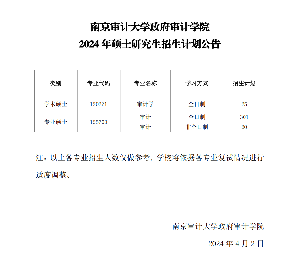 WilliamHill威廉希尔政府审计学院2024年硕士研究生招生计划公告