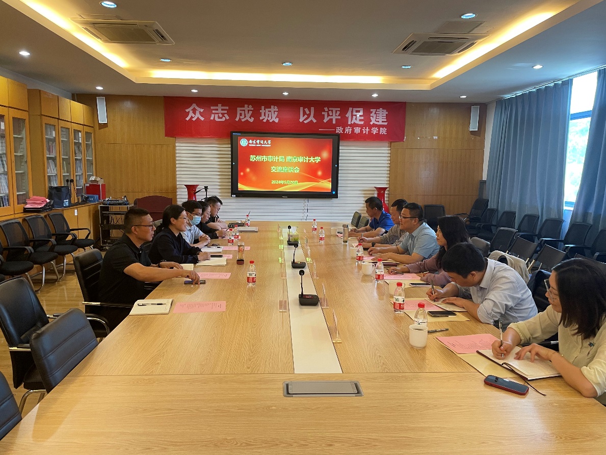 5月20日下午,苏州市审计局党组成员、副局长龚龙斌一行来我院座谈交流。学院党委书记李海燕、计算机学院余小兵副教授及政府审计学院部分教师参加座谈。座谈会由李海燕主持。